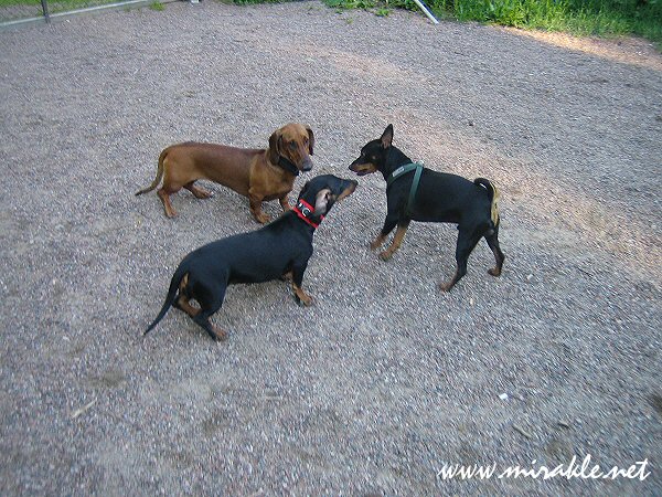 Juu, oltiin tuossa parin mäyräkoiratytön kanssa bilettämässä Laajasalon koirapuistossa ja hauskaa oli, siis ainakin