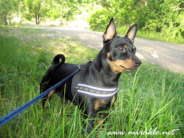 Vieraskirjassani oli kiva viesti. Siinä kerrottiin, että Elimäellä on toinen kääpiöpinseri, joka on saman värinen ja