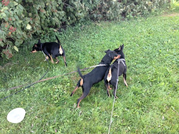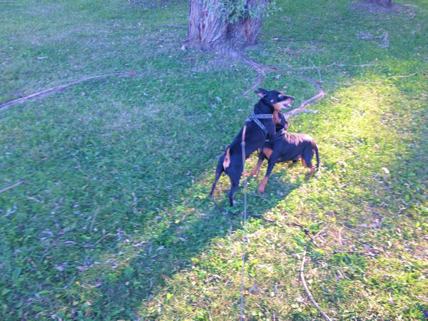 Kyllähän sitä piti hieman pistää painiksikin siinä leikin tiimellyksessä, kun lämpötila alkoi laskea ja suosia vauhdikkaampaa menoa. Yhtä asiaa minä jäin ihmettelemään. Miksi meidän piti olla paikallaan siellä puistossa? Eikö me olisi voitu kiertää se koko puisto ja ravata siellä ja täällä ja tuolla? Yritin monta kertaa saada isäntään vauhtia, mutta mitä vielä, se hölötti ja pölötti Nipsun ja Krisun omistajien kanssa. Tapaaminen oli erittäin kiva ja onnistunut, toivon mukaan nähdään jatkossakin.