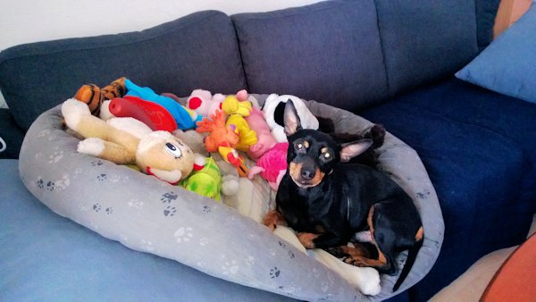 Ei tässä sunnuntaissa kaikki ollut hyvää, ei ainakaan minun mielestä. Isäntä alkoi imuroida ja minusta tuli jälleen pakolainen, sellainen imuripakolainen. Nousin veneeseeni, siis petiini lelujeni kanssa ja peti sohvalle imuroinnin ajaksi. Pitäisi kyllä vähän ajatella. pieni koira voi saada ison trauman, kun lelut sullotaan huolimattomasti yhteen kasaan ja minä joudun vielä ihan kuilun partaalle, eli sohvan reunalle, pahhau!