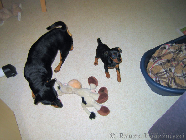 No niin, nyt se sitten tapahtui, eli eilen. Sain eilen pikkuveikan, sellaisen kömpelösti kävelevän kakkatykin. Vaaveron nimi on Kris ja se on kotoisin Bonzer´s kennelistä Valkealasta. Tähän sitä sitten tultiin, kun isäntäväki hiljaa myhäillen häipyi pari kertaa reissuilleen, kertomatta minulle matkojen todellista syytä. Hitto jos tuosta vaavista tulee yhtä komea kuin minä, niin tulen kateelliseksi siitä. Ja tiedättekö mitä, se pieni taapero aikoi alkaa pitämään minun kanssa näitä nettisivuja! Eihän se osaa vielä edes horjumatta kävellä ja heti nettiin, voi näitä nykyajan pentuja, voivoihau! Palaan juttuun asian tiimoilta, kunhan olen toipunut alkujärkytyksestä.