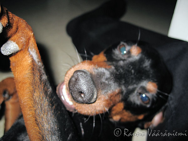 Tähän lopuksi vakavaa asiaa kaksijalkaisille: älkää ottako itseänne vahvempaa koiraa. Eilenkin yksi täti tuli dalmatialaisen perässä hihnan päässä kuin lapanen, sen pilkkuhirviön syöksyessä meidän päälle. Täti sinkoili lopulta sen koiransa kanssa ajotielle, hyvä ettei jäänyt vielä auton alle. Onneksi isoveikkahaukku Luka oli mukana, se sanoi suorat sanat pilkkuhirviölle ja tädille!