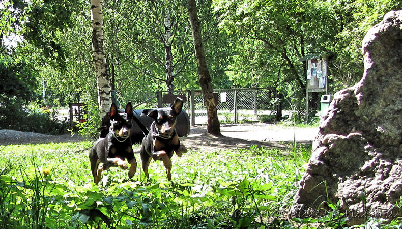 Olemme käyneet viime aikoina eri koirapuistoissa, ihan tutustumismielessä. Sen lisäksi kävimme katsomassa Korsossa ankkalampia, mutta ei siellä mitään ankkoja uinut. Pöljä koko nimi. No joo, sorsia ja lokkeja siellä kyllä oli. Lukaveikkahaukku yritti kieriä jonkun linnun raadon päällä, mutta isäntä kiskoi sen pois. Eivätkö ne ihmiset vieläkään tajua, että hurjat saalistajat (minä varsinkin ja Luka) tarvitsevat naamiohajun, että hurjan kääpiöpinserin haju ei paljastaisi meitä.